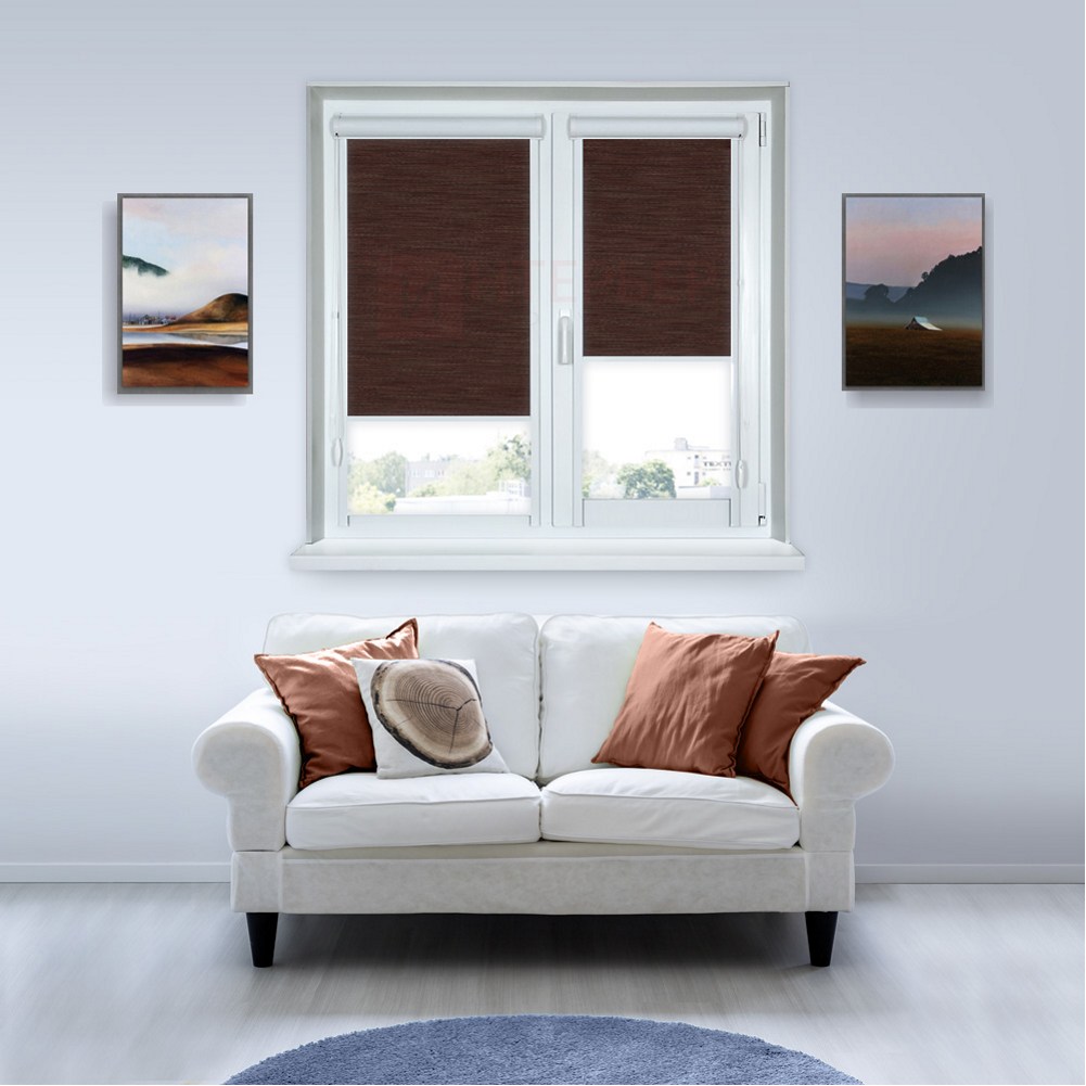 кассета (короб) с тканью и цепью управления, боковые направляющие, фиксатор цепи и системы крепления – без сверления (на двусторонний скотч) или на саморезы. По умолчанию - цвет фурнитуры белый. |
